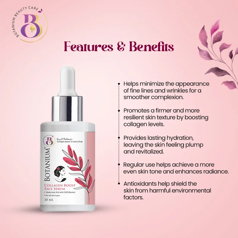 Botanium Collagen Boost Serum is a powerful addition to your skincare routine, designed to rejuvenate and enhance your skin’s natural beauty while providing deep hydration and collagen support for a youthful, radiant appearance.