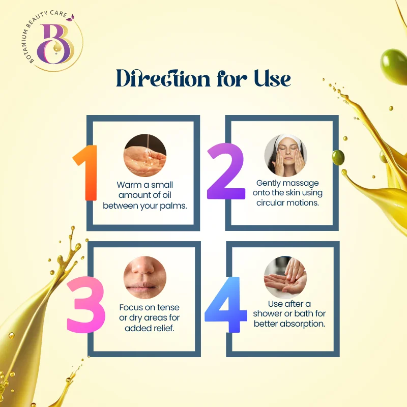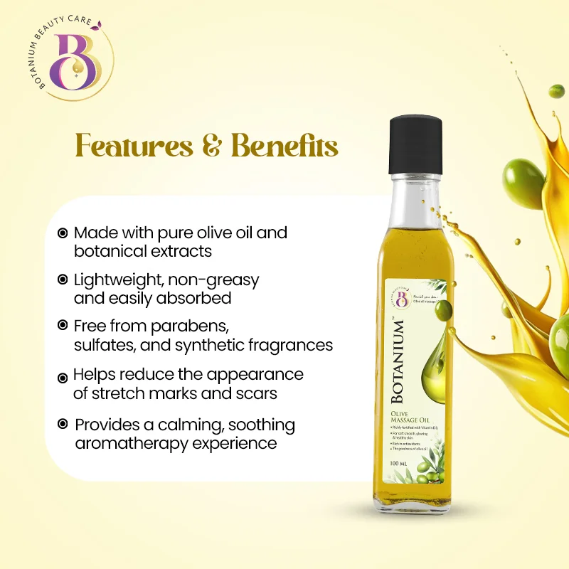 Botanium Olive Massage Oil is a nourishing and soothing oil designed for body massages and skin hydration. It is enriched with natural olive oil, known for its moisturizing, antioxidant, and skin-replenishing properties. The oil provides a smooth glide for massage while deeply hydrating the skin, leaving it soft, supple, and radiant. Its lightweight and non-greasy formula absorbs easily, making it ideal for relaxation, relieving muscle tension, and enhancing overall skin health. Suitable for all skin types, it can be used both professionally and at home for a relaxing and rejuvenating experience.