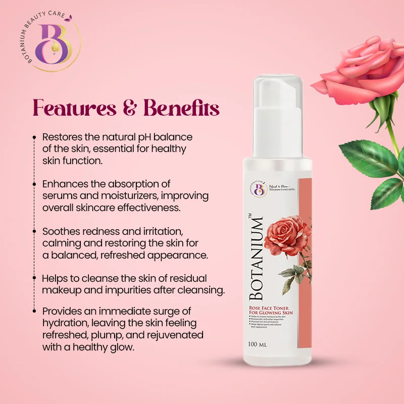 Botanium Rose Water Face Toner is a refreshing and hydrating addition to your skincare routine, helping to balance, soothe, and prepare your skin for a radiant and healthy complexion.